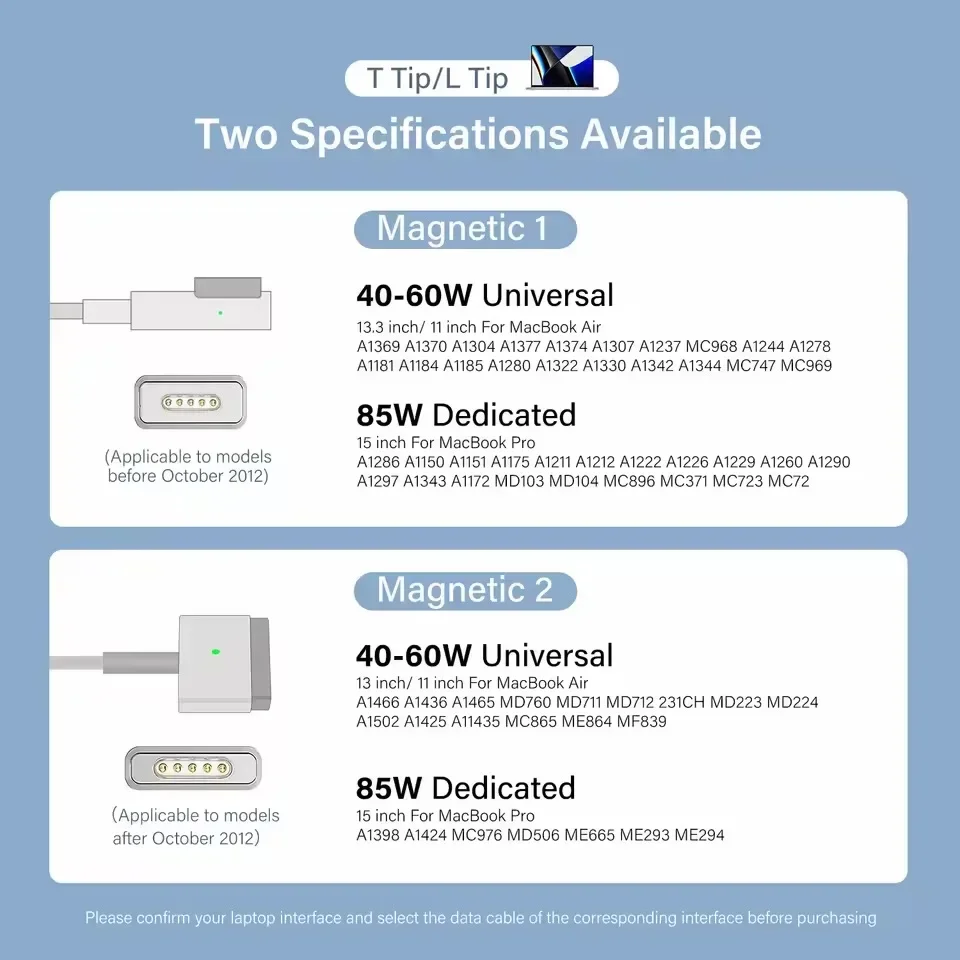 10 Price: $9.89 - $4.94 New Original 85W Power Charger Magnetic AC/DC MagSafe 1*2 Adapter Cord Cable For Macbook Pro Air A1466 A1278 A1286 A1297 A1502 macbook pro 0 comments 0 FacebookTwitterPinterestEmail admin previous post Light Luxury Imitation Pearl Stud Earrings Sweet Heart-shaped Ear Stud For Women Fashion Party Wedding Brid Jewelry Gift next post Makeup Brand Lemontini Dopamine Lip Gloss Case for iPhone 15 16 17 ProMax 12 13 14 Air Pro Max Plus Lipstick Holder Phone Cover You may also like Luxury fashion 3D Camellia flowers PU leather Case for iPhone 16 15... April 18, 2026 Original TWS Wireless Bluetooth Headset with Mic Earbuds Noice Cancelling Earphone Bluetooth... April 18, 2026 Stem Cell Skin Ampoule Essence, Deep Collagen Moisturizing Brightening Revitalizes Repairing Daily... April 17, 2026 Lenovo LP40 Earphones TWS Wireless Bluetooth 5.0 Earbuds Bass Touch Control Stereo... April 17, 2026 Portable Laptop Shoulder Bag 13.3 14 Inch Laptop Sleeve Carrying Case Multi... April 17, 2026 KOEC PDRN Firming Ampoule Peptide Nourishing Control Stem Cell Ampoule Essence Absorbable... April 17, 2026 Round Creative Smiling Face Lapel Pins Animals Mice Cats Exquisite Brooches Eyeball... April 17, 2026 2 Pairs Per Set Small Round Sunglasses Women Cute Skinny Cat Eye... April 17, 2026 Luxury Leopard Print Phone Case for IPhone 17 Pro 13 11 12... April 17, 2026 USB C to USB C Cable 40Gbps 100W PD Fast Charging Quick... April 17, 2026 Leave a Comment Cancel Reply Save my name, email, and website in this browser for the next time I comment.