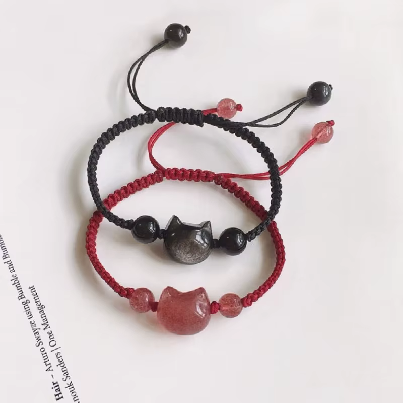 Lucky Pink Crystal Cats Friendship Bracelets For Best Friend Bff Matching Rope Chain Bracelet For Couples Jewelry Gift